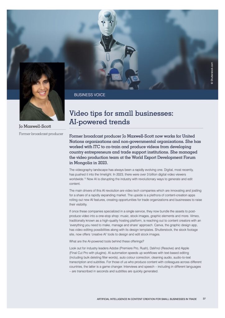 Writing the guide "Video tips for small businesses: AI-powered trends in video production" for ITC's AI in publishing and content creation publication.